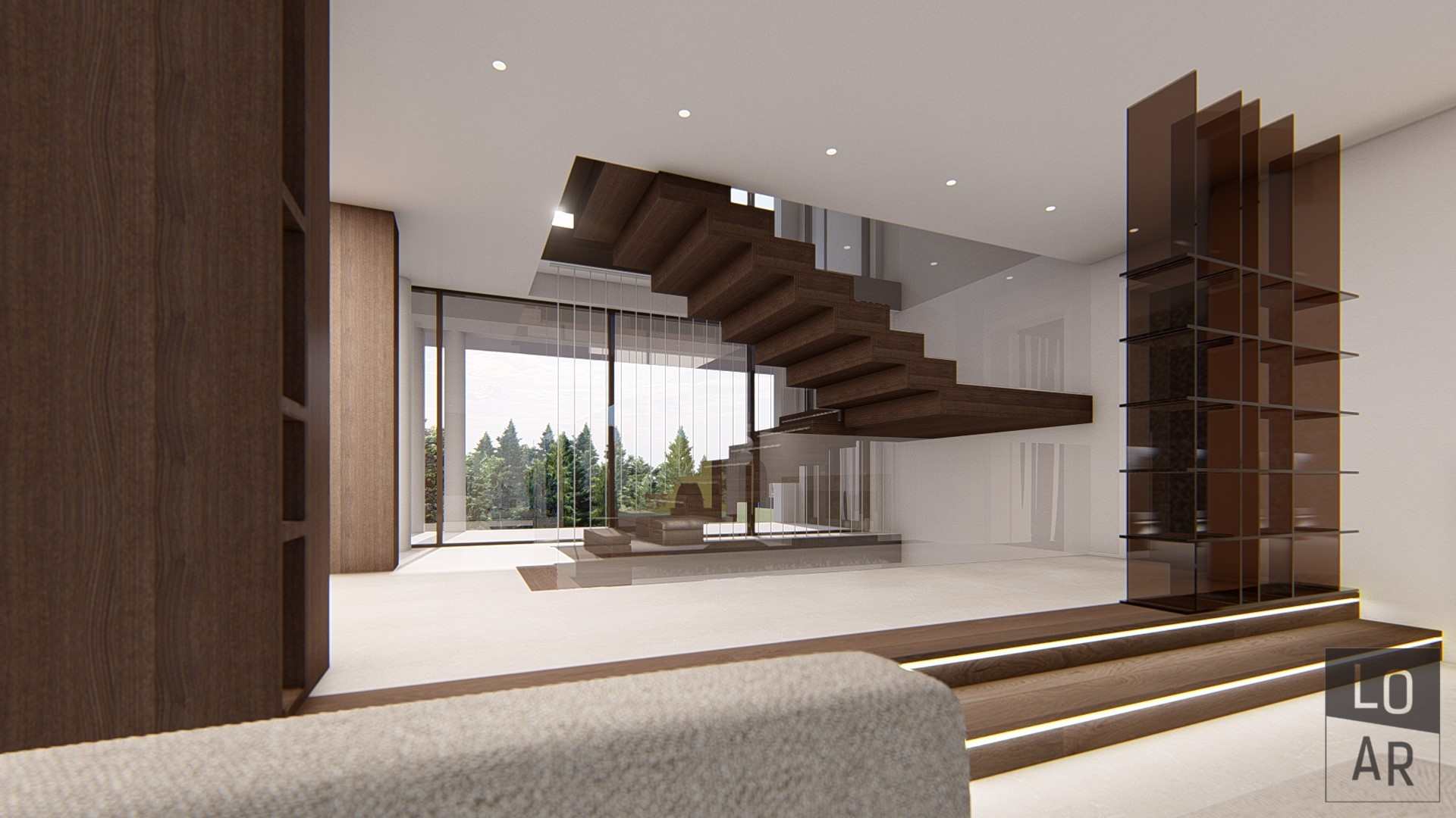Sculptural bridge like gallery space